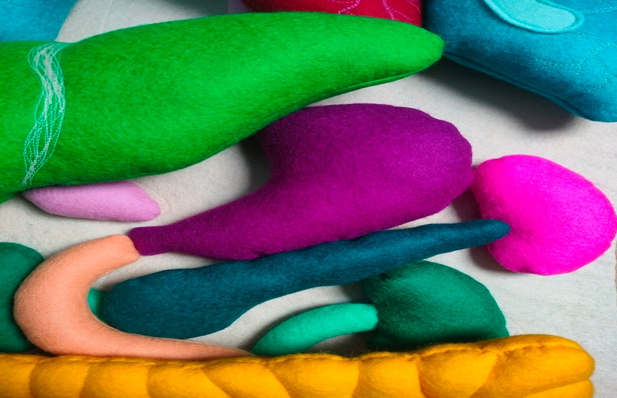 De organen zijn vervaardigd uit 100% natuurlijk wolvilt en kunnen met velcro op de achtergrond bevestigd worden.