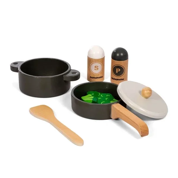 MAMAMEMO® potten en pannen zijn ideaal om te spelen en te leren. Met deze set kan de mini-kok een voortreffelijk diner bereiden voor de teddyberen.